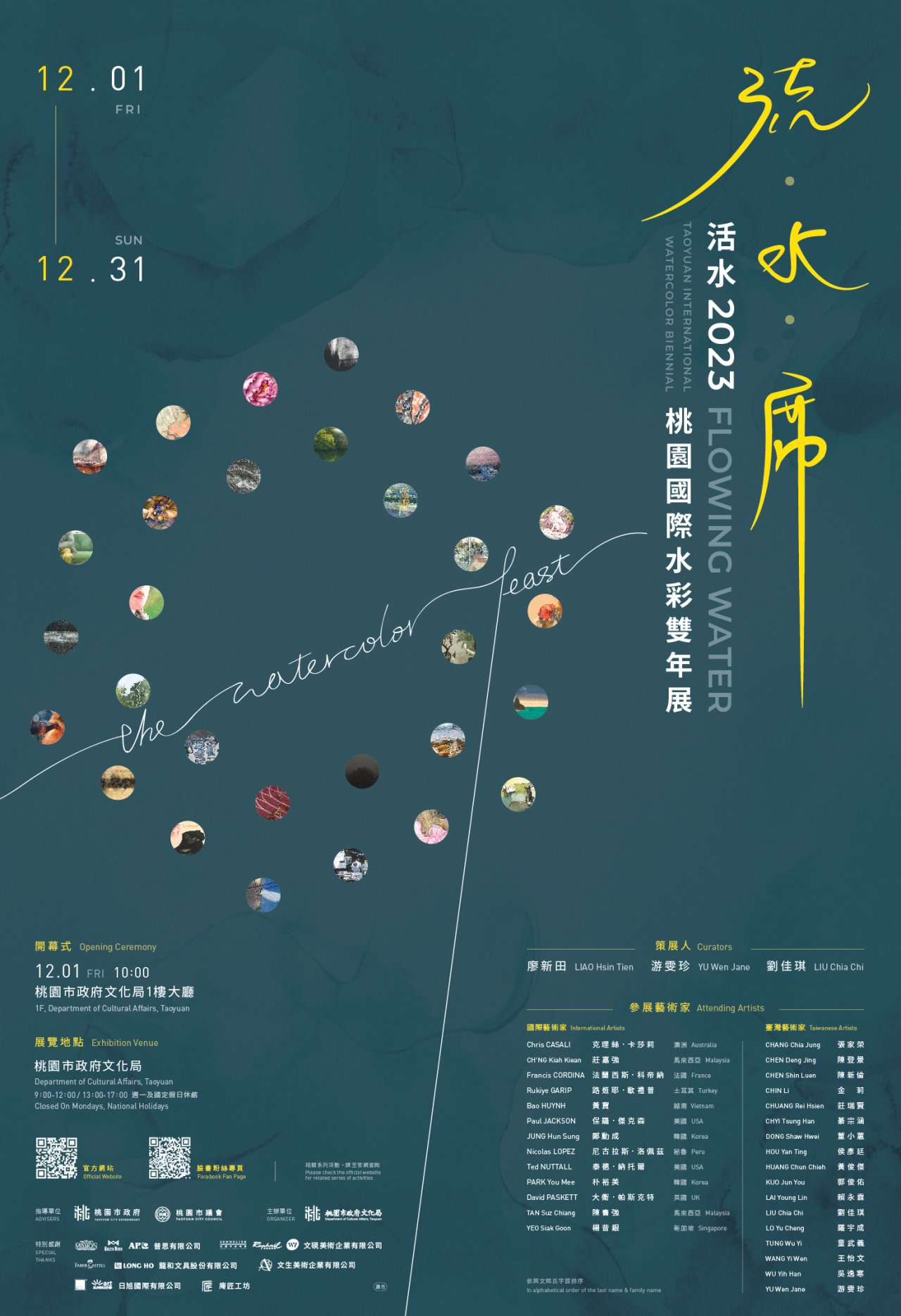 一、 | 本屆展覽以「流.水.席」為主題,匯聚了來自秘魯、澳洲、美國、英國、法國、土耳其、新加坡、馬來西亞、越南、韓國等國際 13 位及臺灣 17 位水彩名家,總計展出 114 件精彩創作。 |